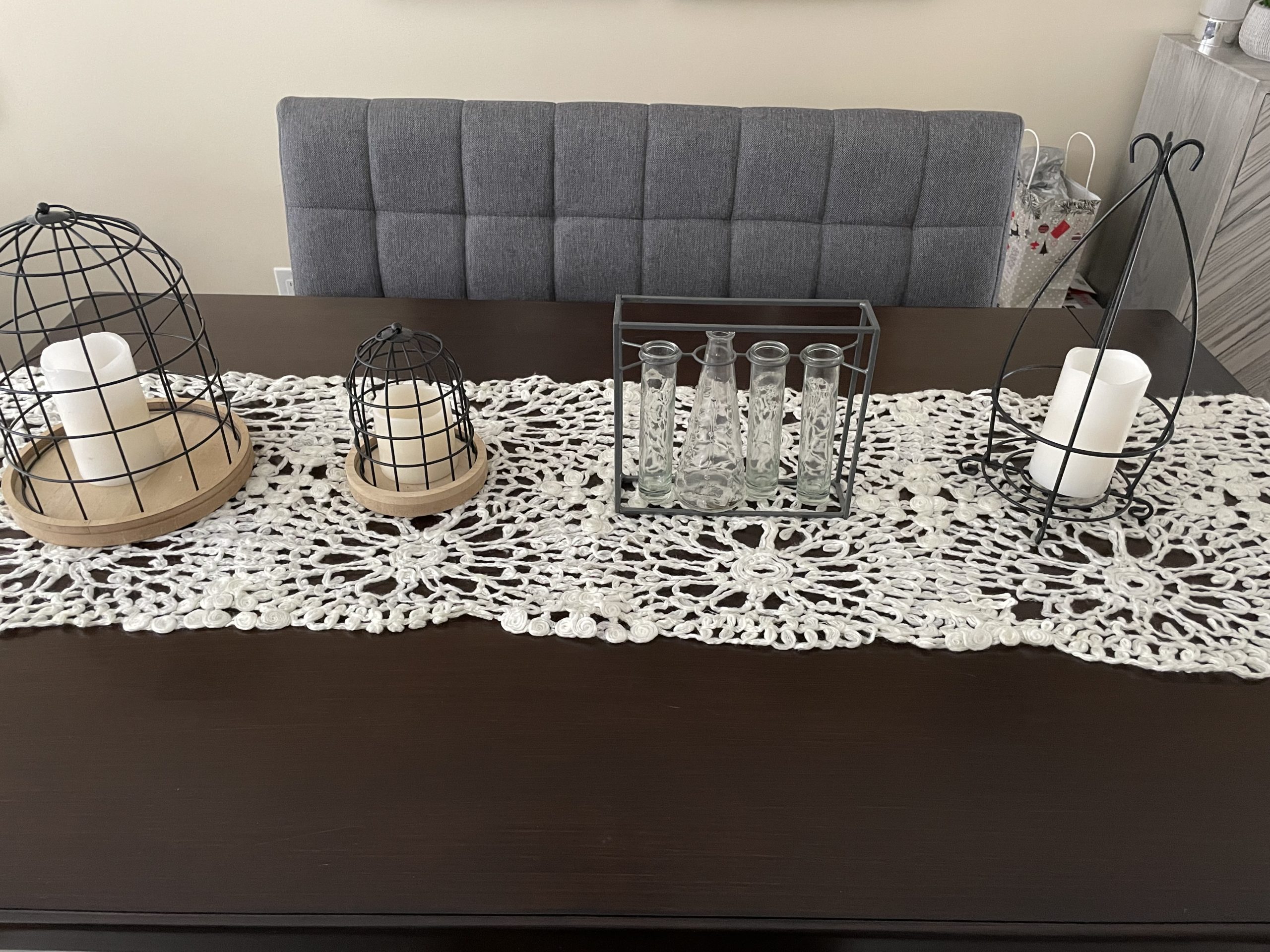 This is a crochet shawl that I found online in my local Buy Nothing Group. I knew the minute I saw it, it was going to be my new table runner. I love it!