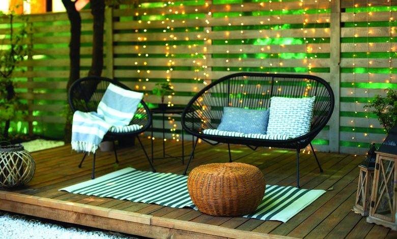 Create a bespoke bistro vibe by using freestanding planters and posts along with hanging lights to make an intimate outdoor hangout spot at night. For those with permanent structures, like a deck or a gazebo, lights can be strung across the area or on railings or edging.
